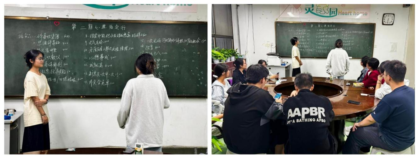 为帮助同学们在互动中探索自我价值观,增强对人生重要事物的认知与选择能力,9月26日晚上七点,太阳成集团tyc138于经管楼1406举办了以“朋辈辅导”为主题的第二期大学生心理拍卖行活动。本次活动由心灵驿站24级负责人彭文靖主持,共有11名同学参与。